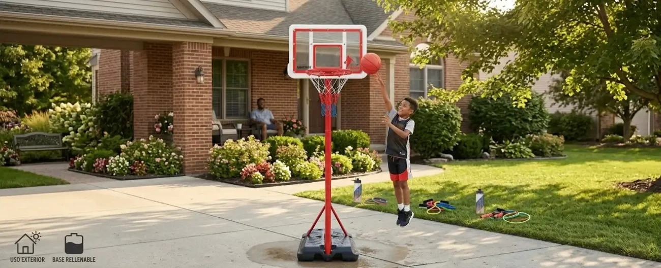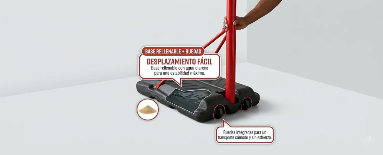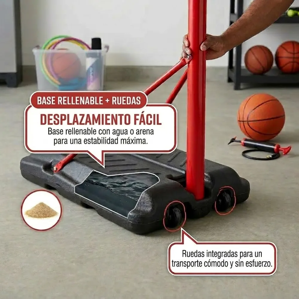 Sí, todo el sistema se envía en una única caja compacta diseñada para facilitar el transporte. Esto asegura que todas las piezas (base, postes, tablero, aro, red, balón e inflador) lleguen al mismo tiempo y bien protegidas.