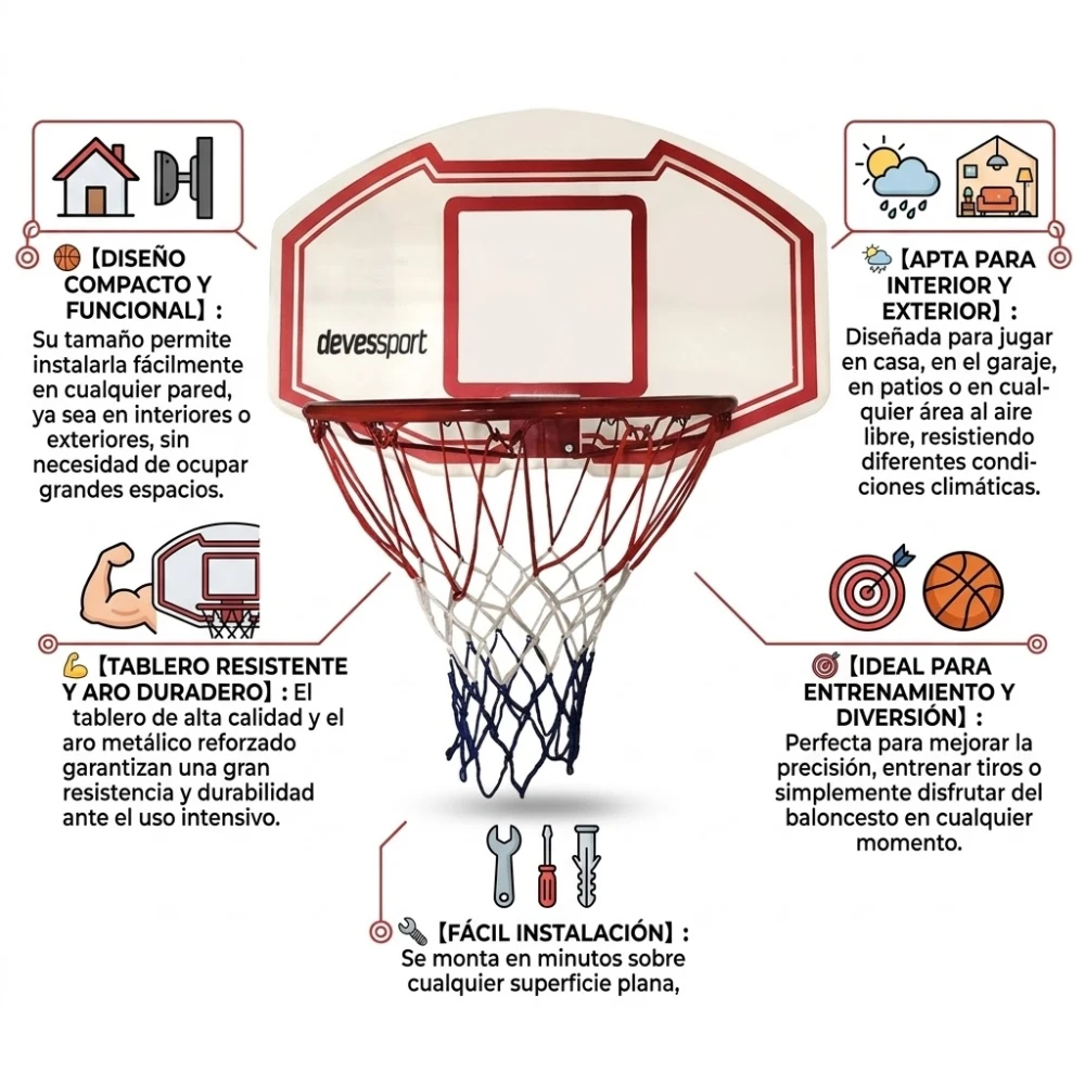 Material: Tablero de alta densidad ultra resistente y aro de acero.