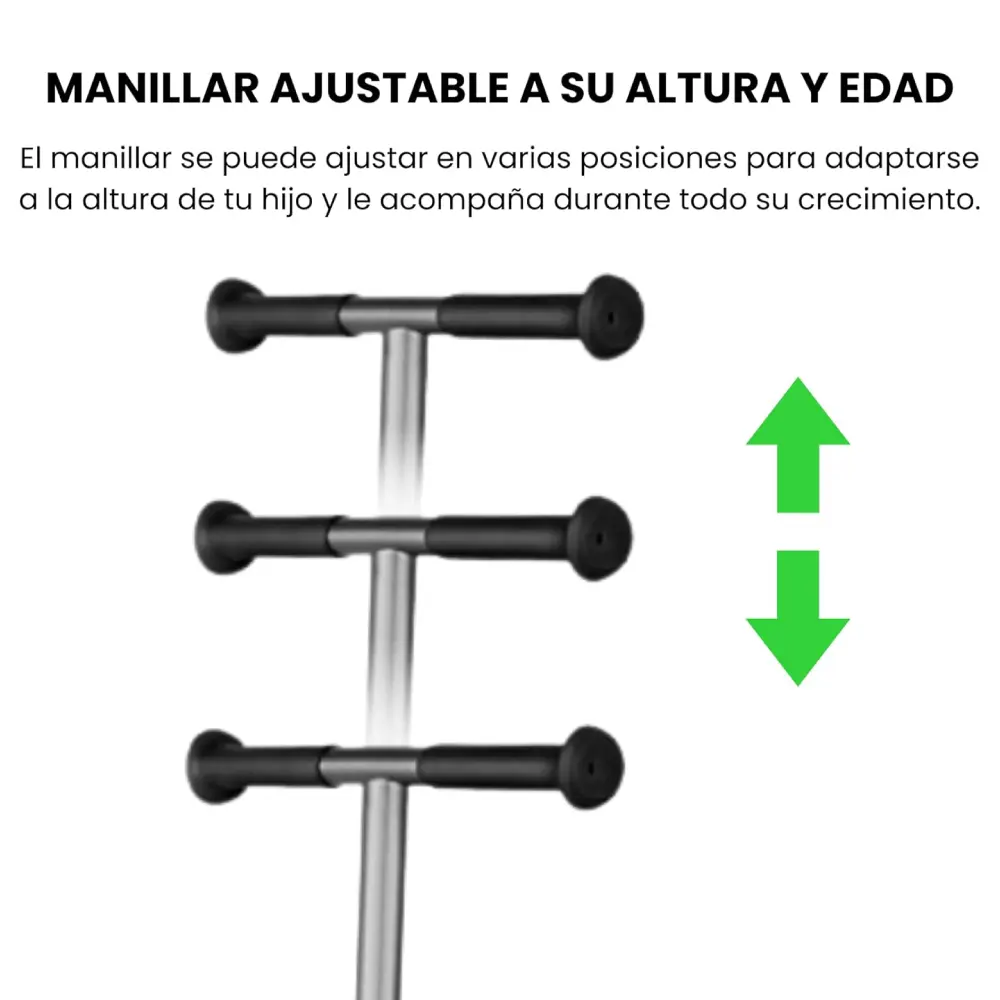 El modelo Scooter cuenta con las dos ruedas delanteras, así como las líneas de diseño del propio patinete, iluminadas por luces LED que dan al Scooter un aspecto futurista y único. Por supuesto, el manillar es regulable en altura para que la diversión acompañe a los más pequeños durante sus años de crecimiento. Tampoco dejamos de lado la seguridad, por eso el patinete cuenta con un freno de pie de primera calidad. Además, cuando hayan terminado de jugar, podrás guardarlo donde quieras ya que es completamente plegable.