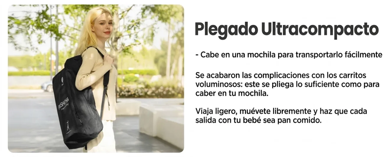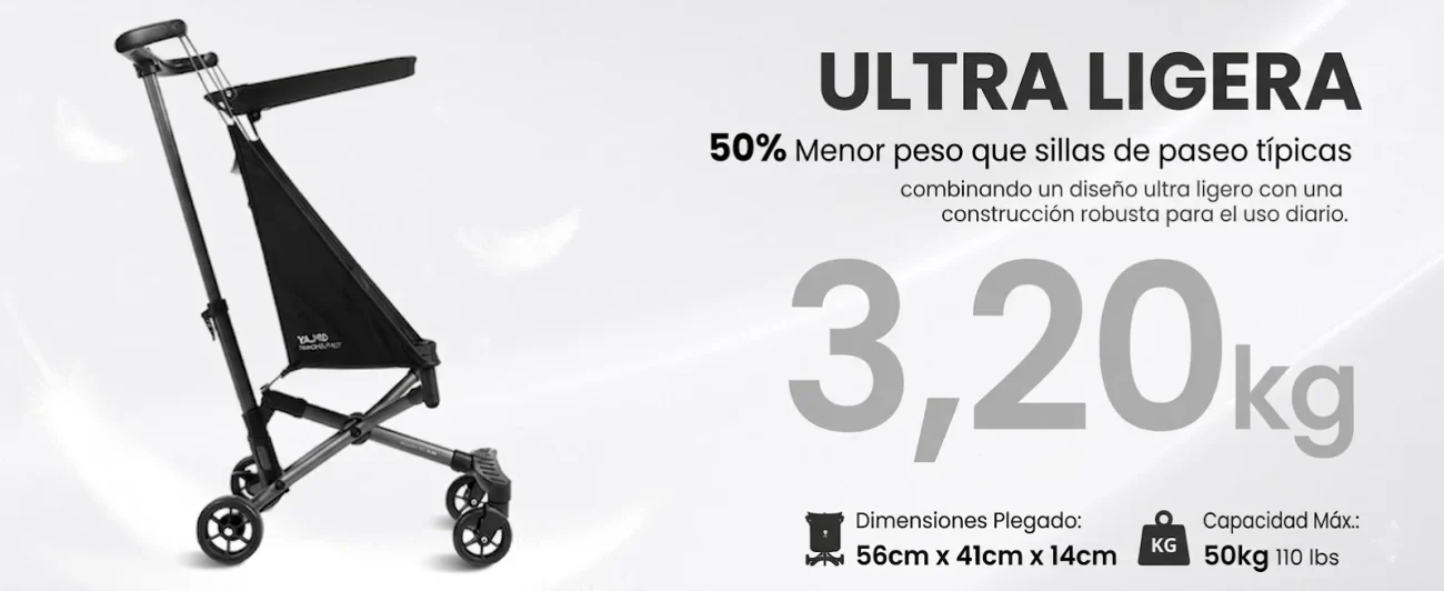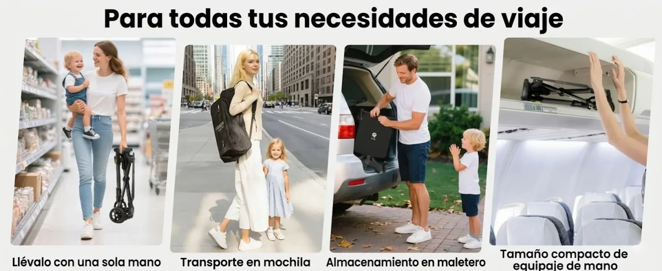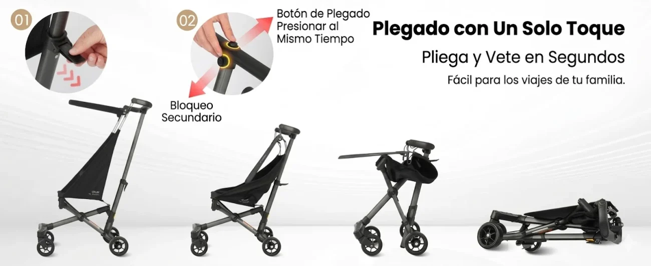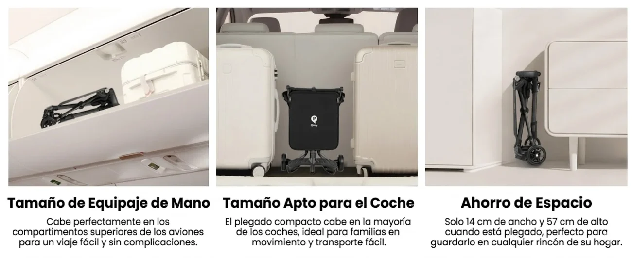 Su plegado ultracompacto facilita el almacenamiento en maleteros pequeños, transporte público o viajes, convirtiéndola en la opción perfecta para familias viajeras.