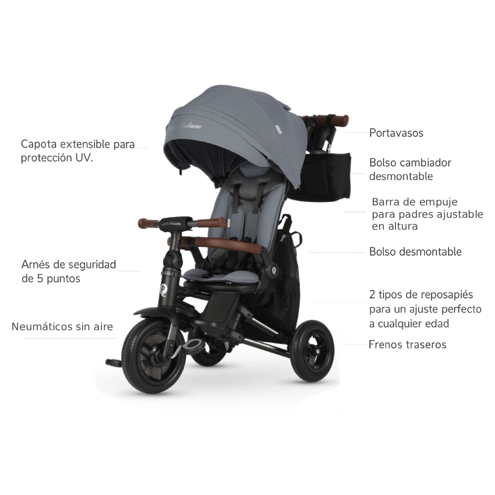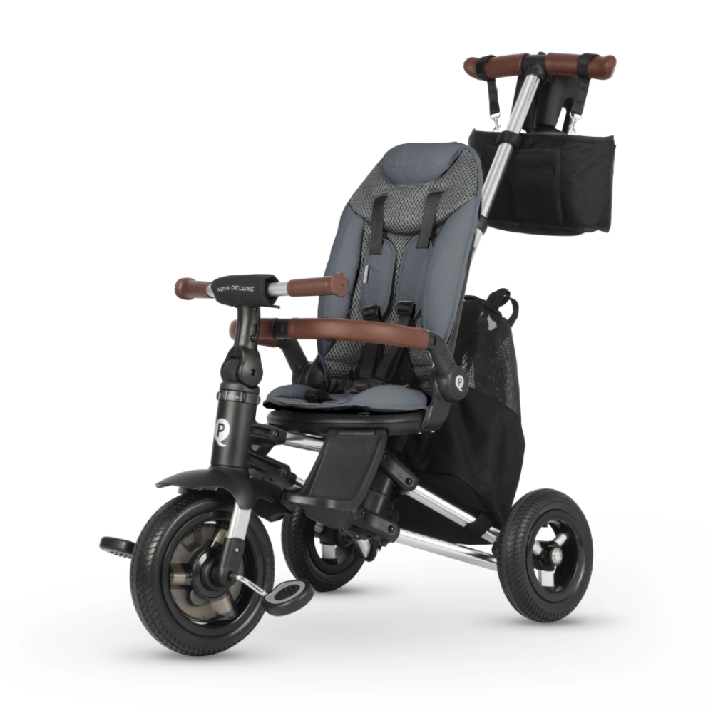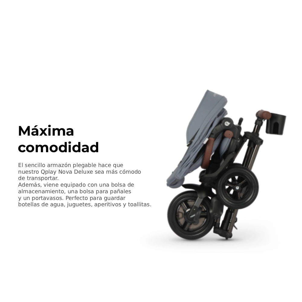 El triciclo Qplay Nova Deluxe combina una estética moderna con materiales de alta calidad. Su acabado premium, el asiento ergonómico, los detalles en ecocuero y los colores elegantes lo convierten en un producto ideal para familias que buscan funcionalidad, confort y diseño en un solo vehículo.