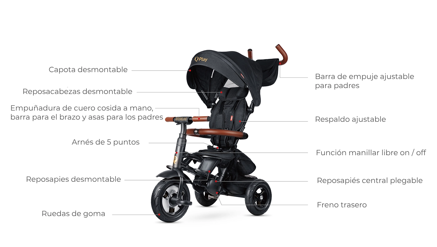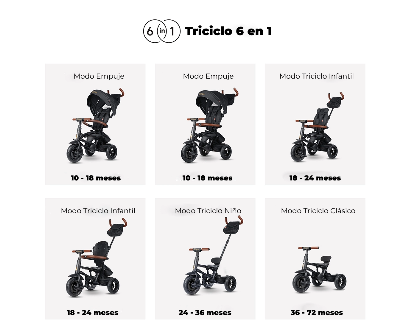 Diseñado para niños de 10 meses a 6 años, el triciclo incluye piezas desmontables y múltiples posiciones de reposapiés que se adaptan al crecimiento de tu pequeño. - Diseño elegante y materiales de alta calidad