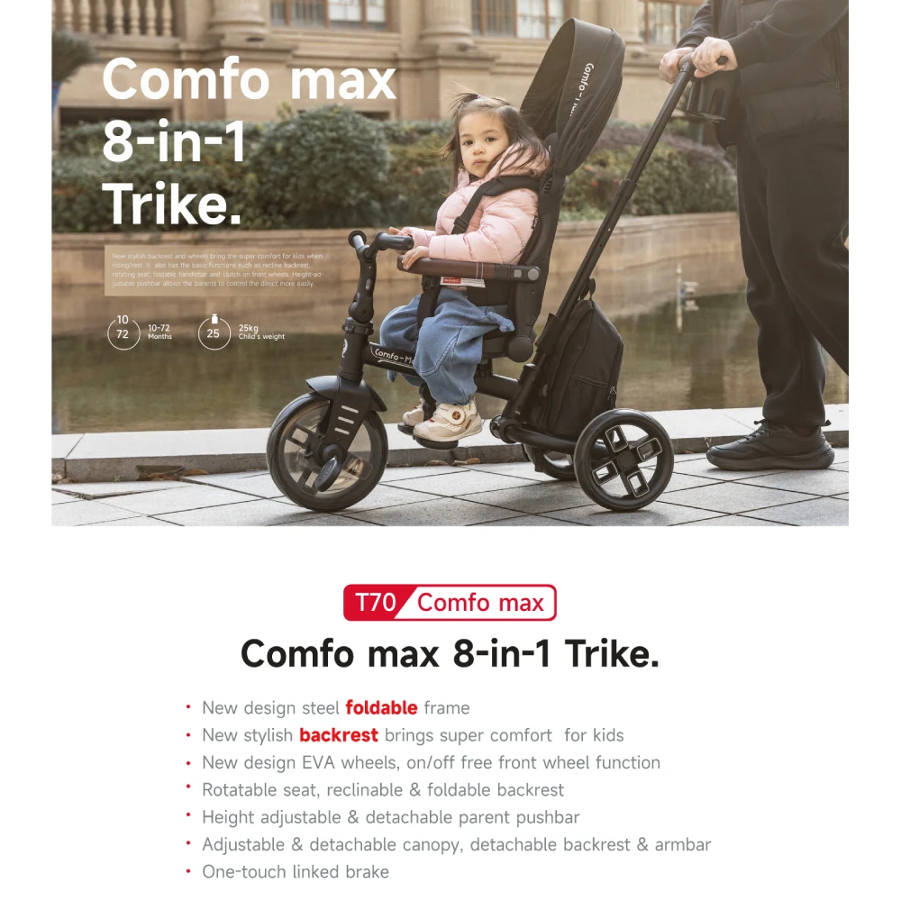 El triciclo Qplay Comfo Max 7 en 1 es la solución perfecta para los padres que buscan flexibilidad, seguridad y comodidad. Con este modelo puedes estar seguro de que se adaptará a las necesidades de tu hijo a lo largo de su crecimiento, proporcionando la máxima comodidad y seguridad en cada paso. Haz que cada día sea aún mejor con el triciclo Comfo Max: ¡el compañero ideal para padres e hijos!