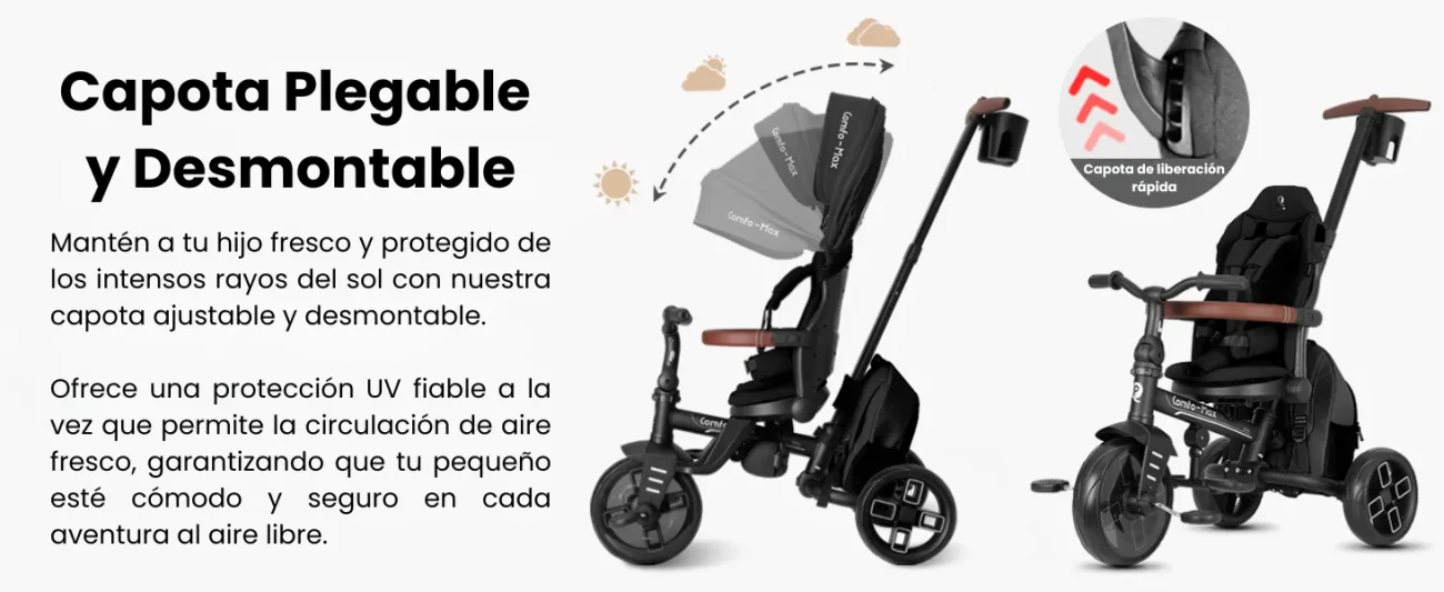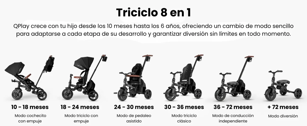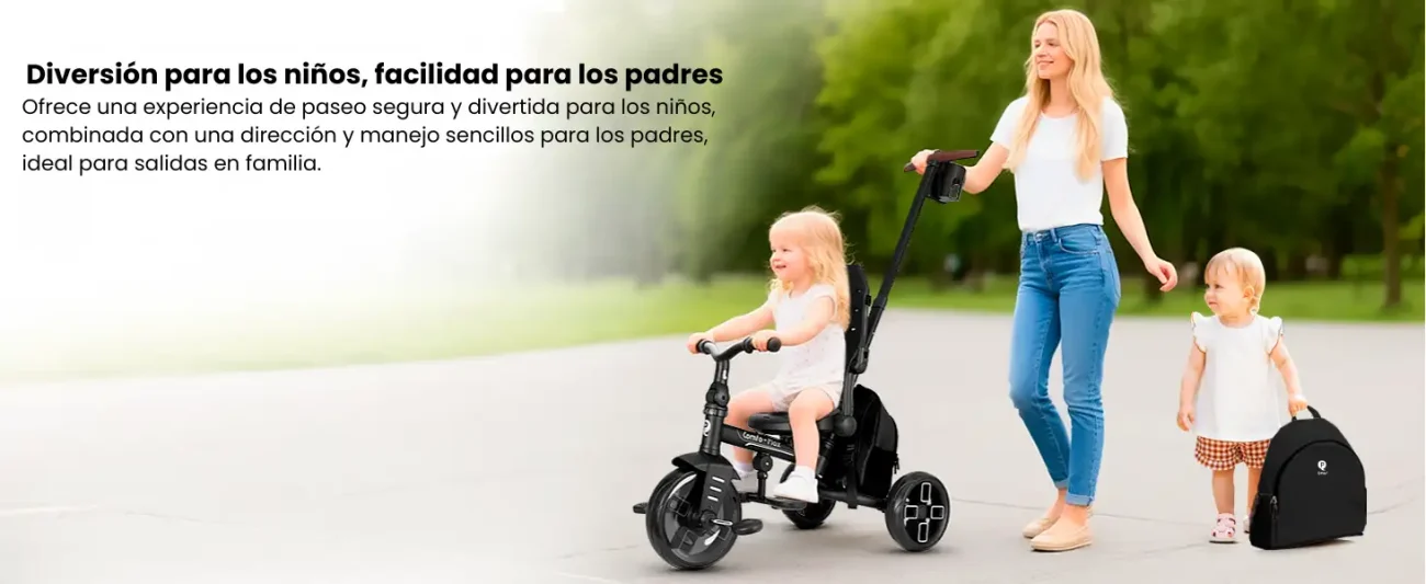 Con el triciclo Qplay Comfo Max obtendrás un triciclo seguro, cómodo y flexible, listo para las aventuras diarias.