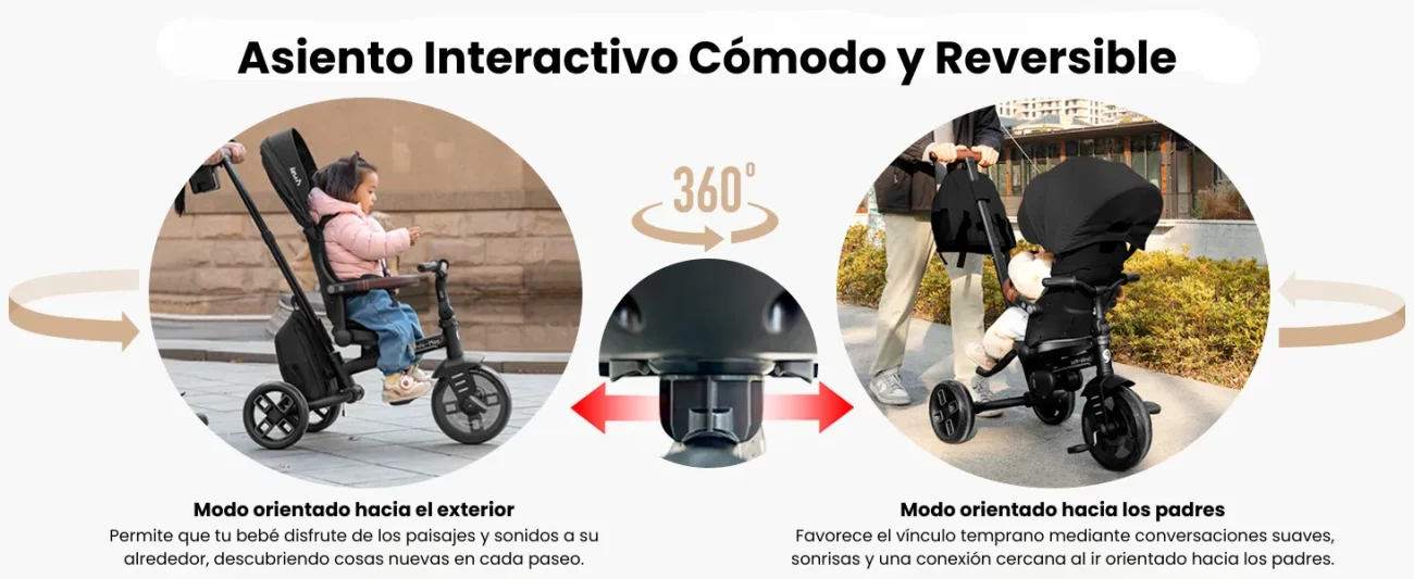 - Asiento giratorio: el asiento es giratorio, lo que permite que el niño viaje tanto en el sentido de la marcha como en contra, ofreciendo mayor comodidad y la posibilidad de vigilar a los padres durante el viaje.