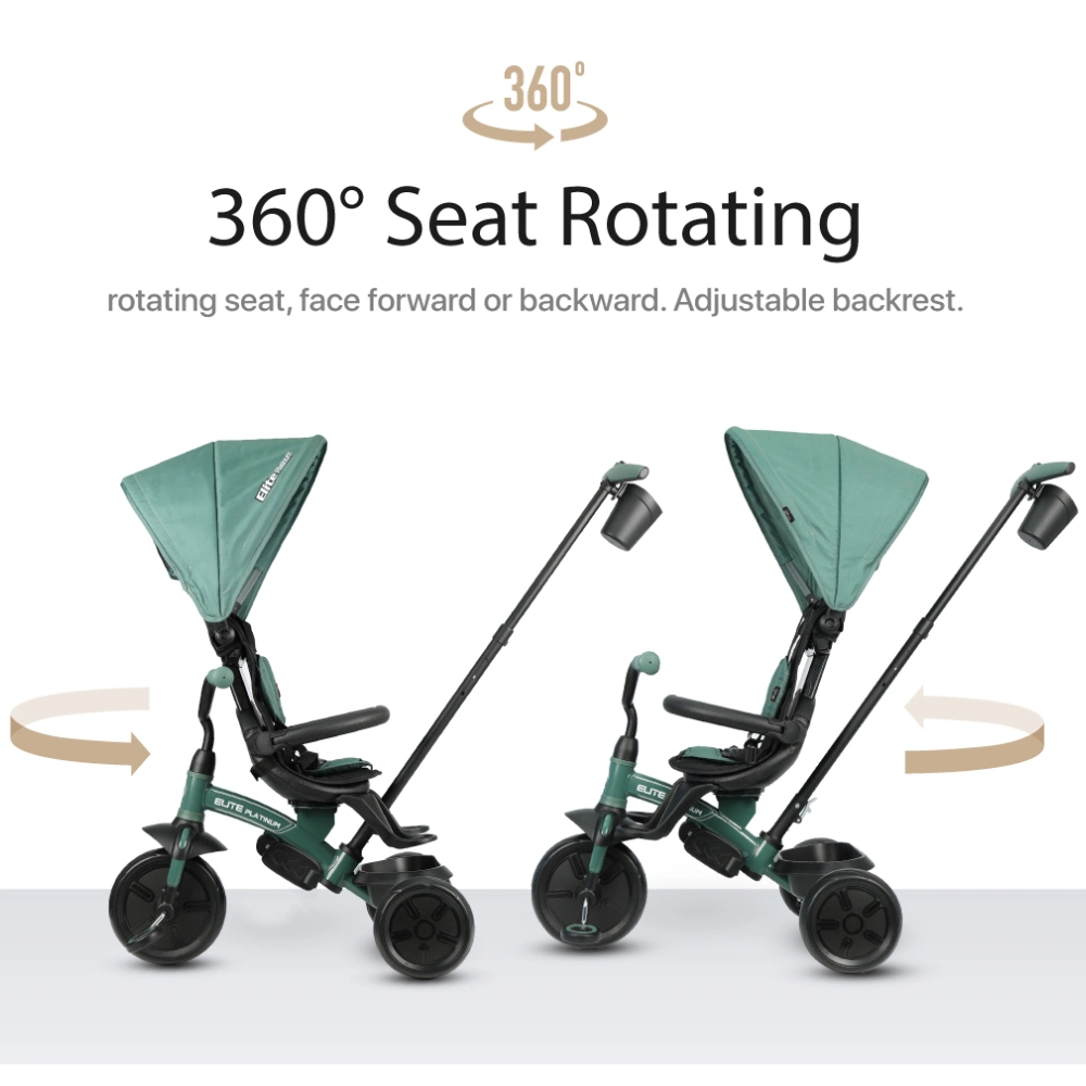- Asiento giratorio 360°: permite al niño cambiar de dirección, pudiendo sentarse mirando hacia los padres o mirando hacia el frente.
