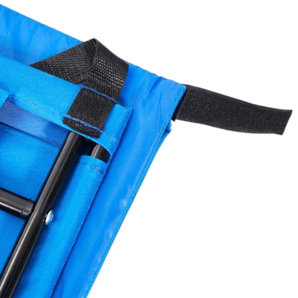 Fabricada con tejido resistente al agua y estructura metálica ligera, esta tumbona incluye un práctico bolsillo trasero para guardar tus objetos personales y un sistema de cierre con velcro para mantenerla compacta al plegarla. Ligera, funcional y lista para acompañarte en cada escapada.